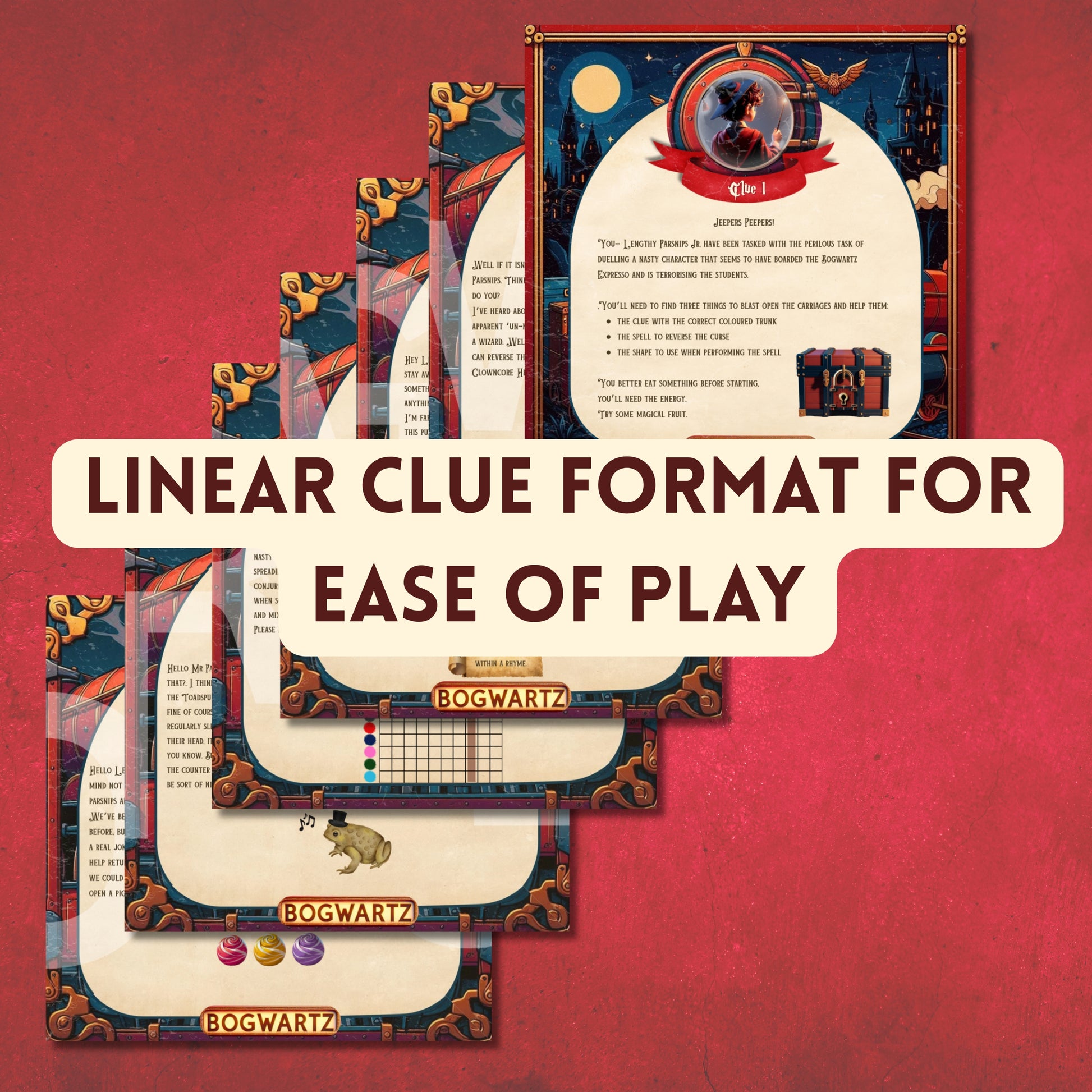 You have been tasked with the perilous task of defeating a nasty character that has boarded the Bogwartz Express and is terrorising the students. Can you crack the clues, find the counter-curses, and solve the magical mystery? There will be mystery, mayhem, and magic!!!