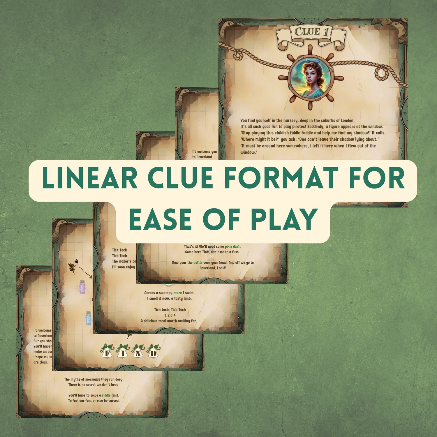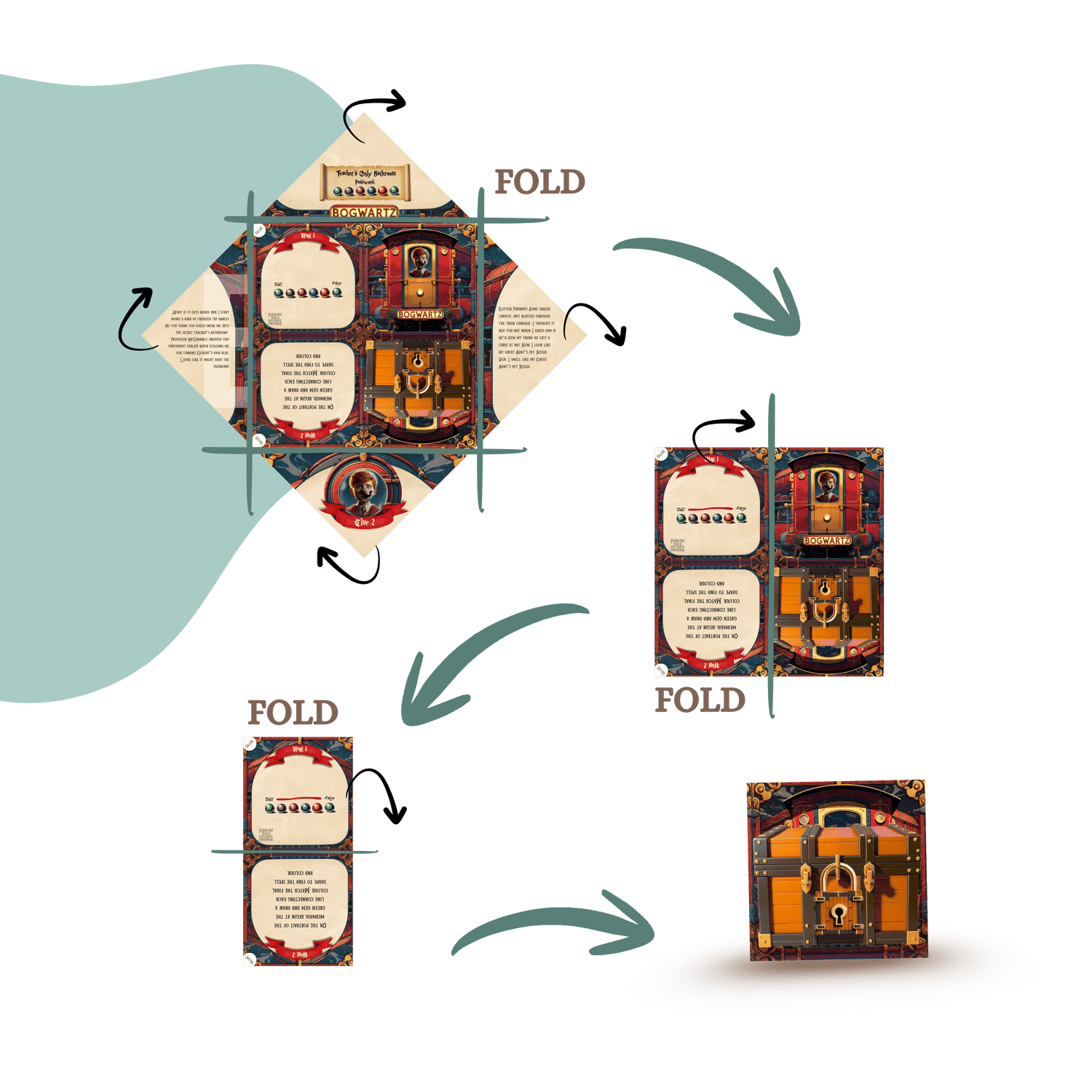 This is a printable escape room game in a linear treasure hunt format, where each solved clue leads directly to the next. Designed for curious minds and brave adventurers, it’s perfect for players who love a story-driven challenge and working together to solve puzzles, riddles, and mysteries. Clues contain an innovative design folding technique to enable complete immersion in the game and enhance world-building within play.
