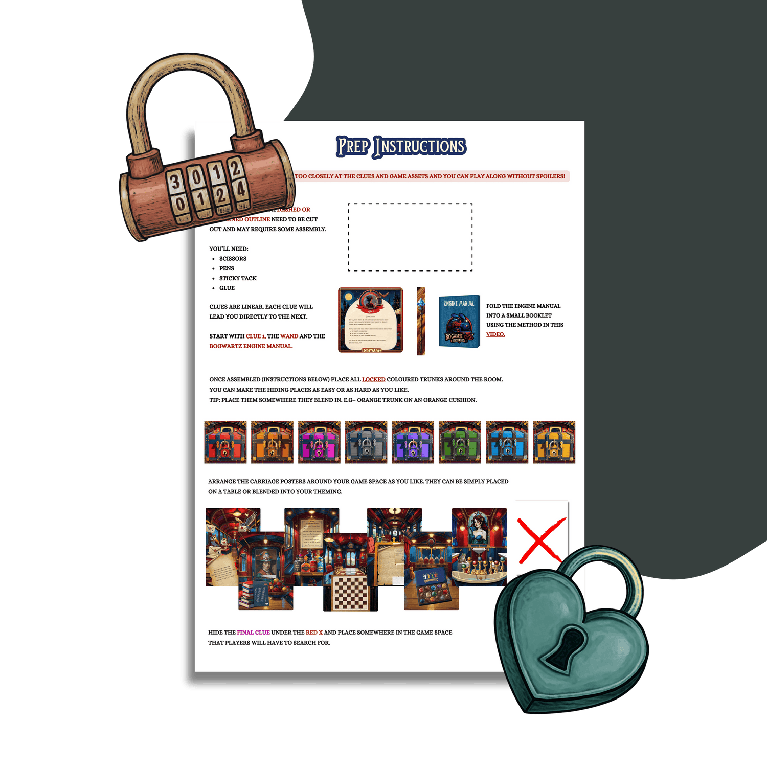 All escape games come with clear instructions showing where to start and exactly how to set up props and assets. After a little cutting and folding, the immersive games are ready to play.