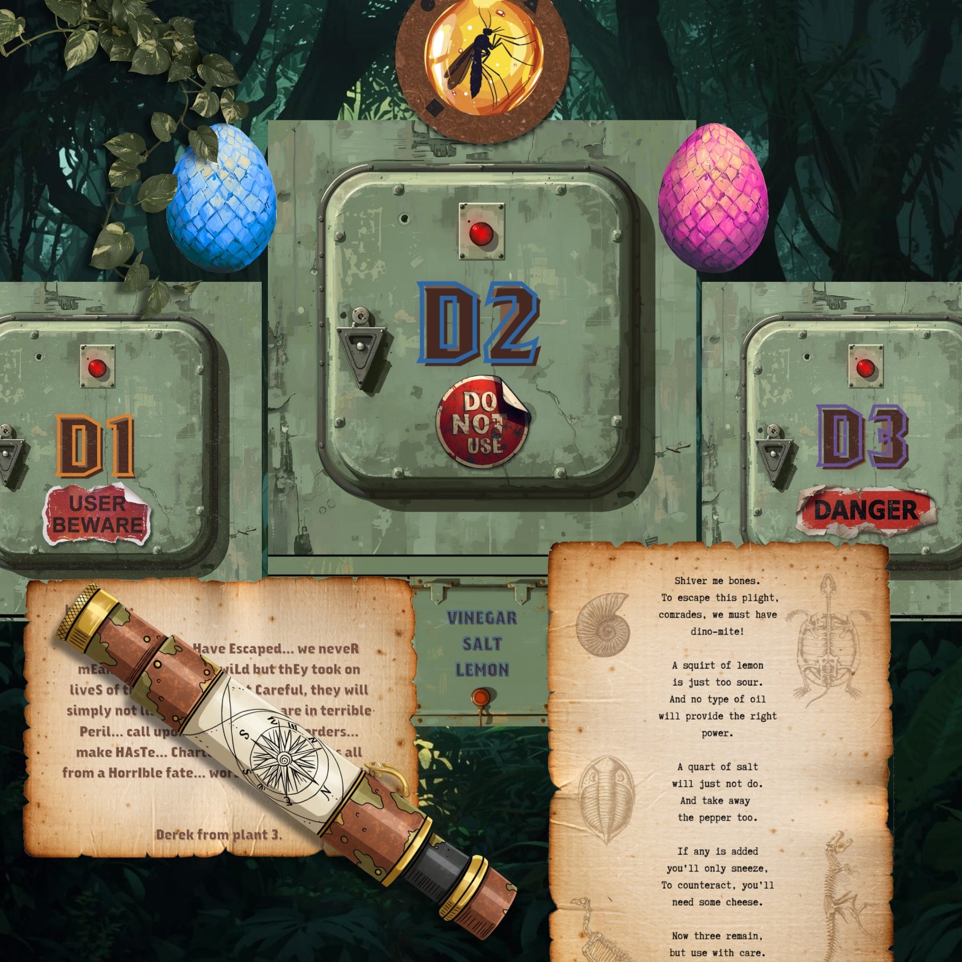 Famed explorer Indiana Bones is embarking on a bone-chilling adventure. Stranded on a Jurassic Island, the explorer has a bone to pick with some deadly dinosaurs standing in the way of his escape. Can you join his quest and fight fearsome foes, crack curious codes and ponder perilous puzzles, all while keeping hidden from the T-Rex?